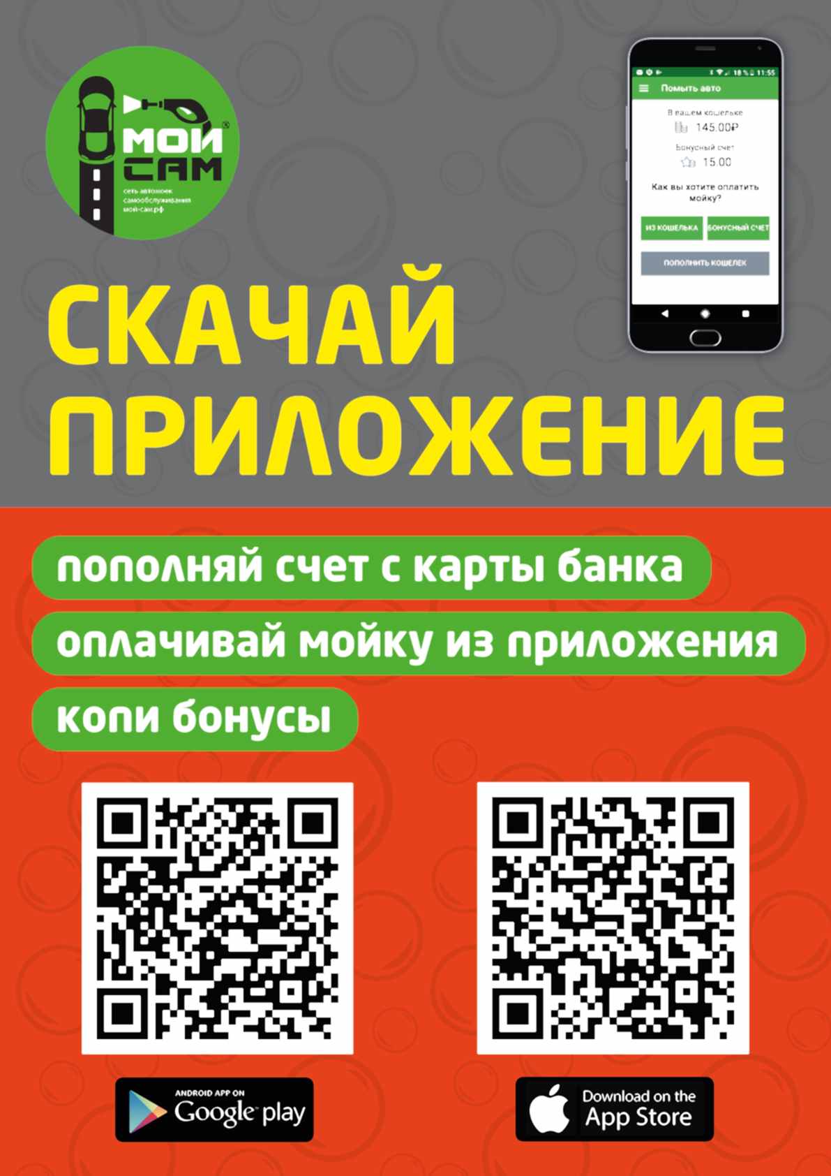 ![]() | Теперь можно оплачивать мойку прямо с телефона! Скачай приложение Мой Сам, пополняй Пин-ап с карты, копи бонусы! Читать дальше| 22-08-2019 | |